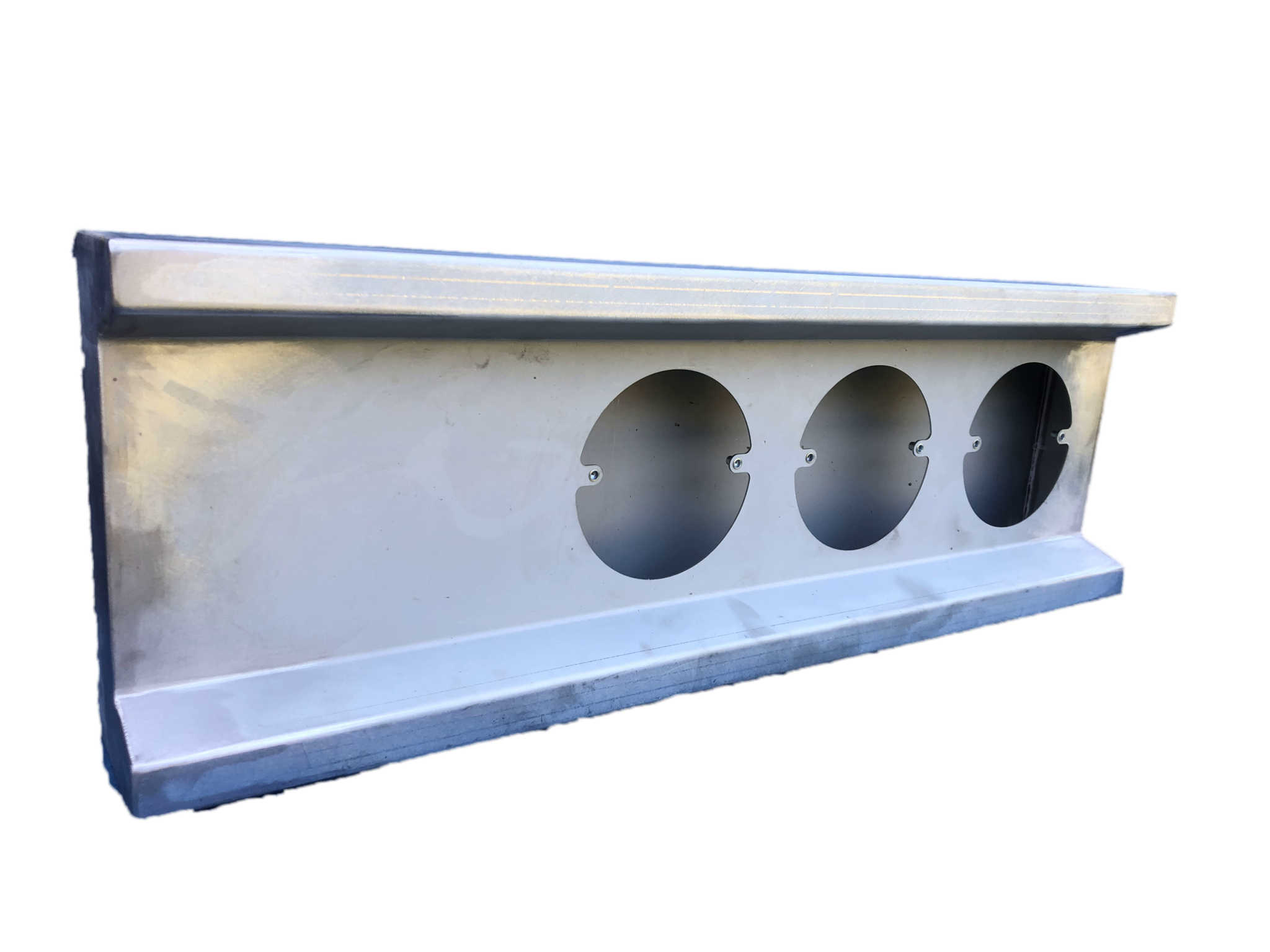 bumperdeel met 3 ronde gaten aan beide zijden dichtgelast. Zincor behandeling. gaten 140mm met lipjes voor LED. zonder lipjes kunnen er gloeilampen in gemonteerd met de zwarte achterzijde.