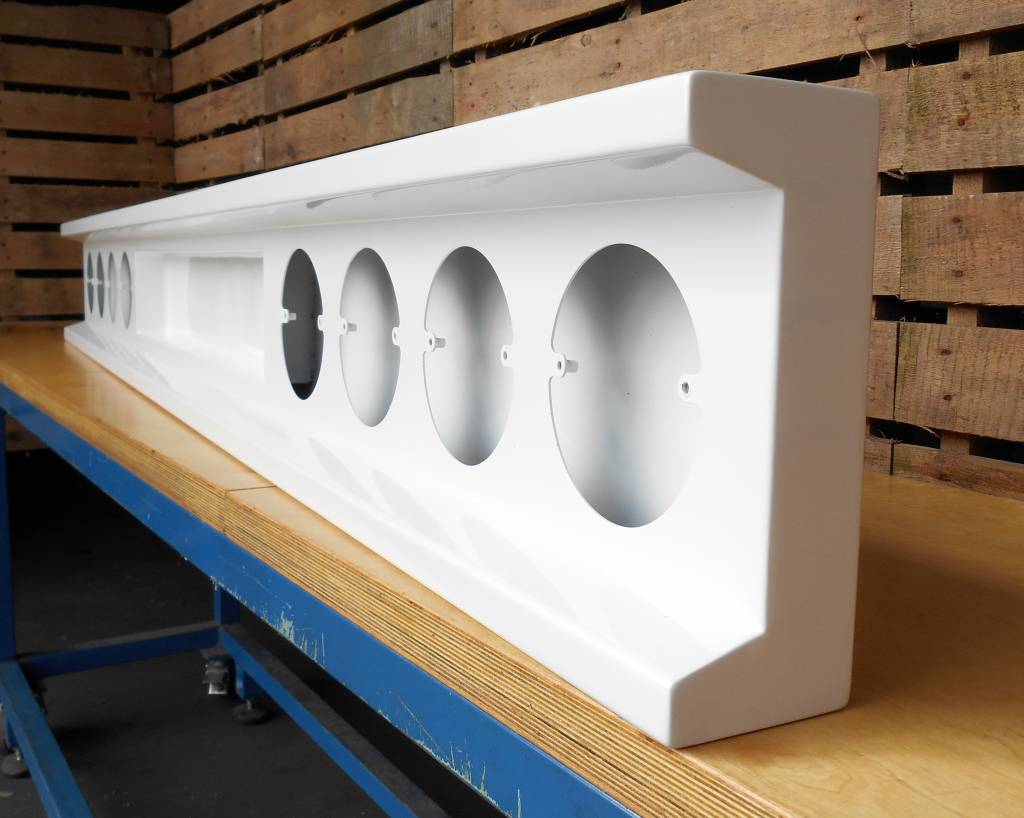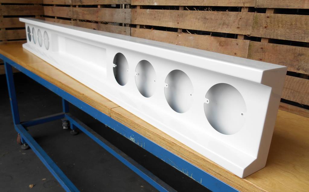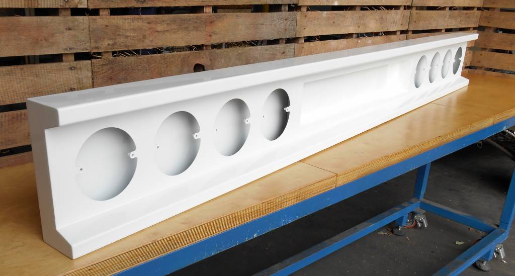 bumper met 8 ronde gaten voor LED lampen met uitsparing voor kentekenplaat en lampen.